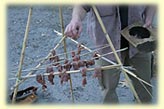 a fire while grinding acorns into flour, roasting meat on a spit, or boiling